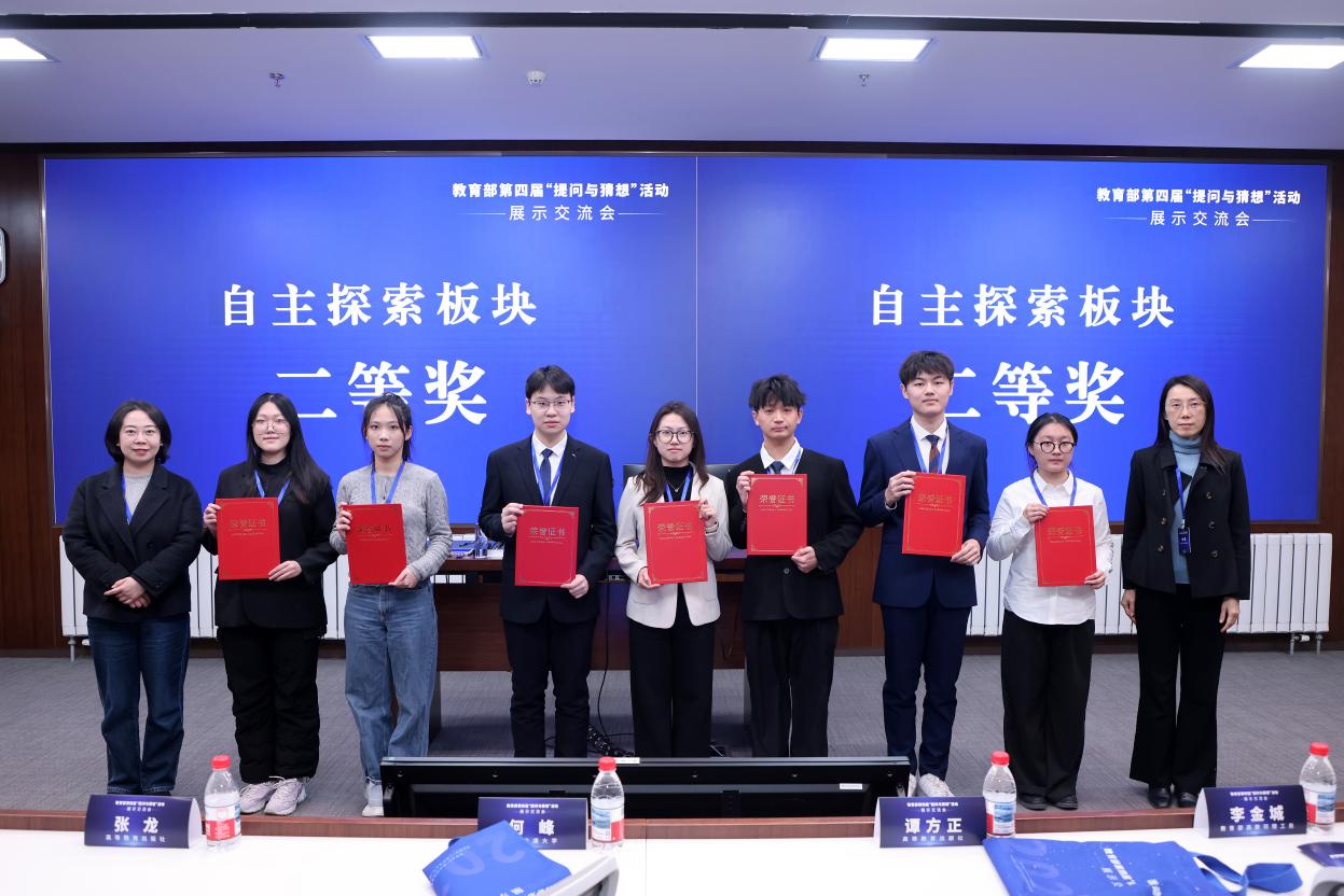 教育部“提问与猜想”活动紧扣“加快培养适应新质生产力要求的拔尖创新人才”核心目标,着力推动本科人才培养从“知识为主”向“能力为先”转型,已成为检验高校拔尖人才创新思维与实践能力的重要标杆。本次竞赛历经学生问题提交、校内“挑战与猜想”比赛锤炼、线上展示评审、揭榜答题、中期汇报及线下答辩等多轮严苛选拔,全国众多顶尖学子同台竞技,竞争尤为激烈。