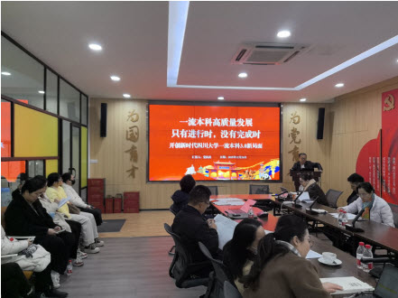 12月26日,部门组织开展了第三次集中学习暨交流研讨活动。党支部书记党跃武教授以“一流本科高质量发展只有进行时,没有完成时——开创新时代四川大学一流本科3.0新局面”为题讲授专题党课。
