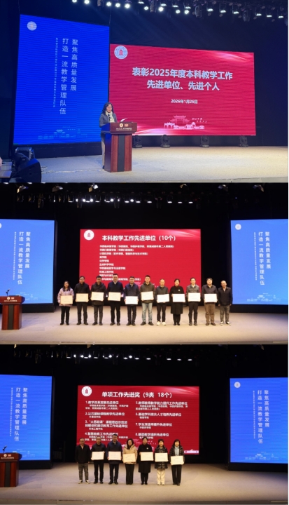 文学与新闻学院教授罗鹭和化学工程学院教授唐盛伟分别以“深耕文学沃土谱写育人新篇——推进本科教育教学改革的探索与实践”和“使命驱动求实创新培养高质量卓越工程人才”为题分享如何高质量完成本科教育教学审核评估工作和做好审核评估“后半篇”文章。教务处(招生办公室)处长党跃武以“把马上就办作为习惯把办就办好作为标准”为题进行了2025年本科教育教学工作总结和2026年重点工作布置,从认真组织一流本科教育教学发展大讨论等9个方面简述了2025年度本科人才培养取得的显著成效。他强调,一流本科高质量发展只有进行时,没有完成时,2026年,要全方位扎实推进“12345”战略行动计划,做好本科教育教学审核评估“后半篇”和“十五五”一流本科发展“开局篇”。要抓住整改落实、改革创新“两手硬”;抓牢人才培养方案再优化、教学质量管理再强化、教育教学改革再深化;抓细“智能教育+”“课程思政+”“实践教育+”“国际化教育+”;抓实未来学习中心建设、专业结构调整和内涵建设、智慧课程建设、教师AI+能力建设、数字教材建设。