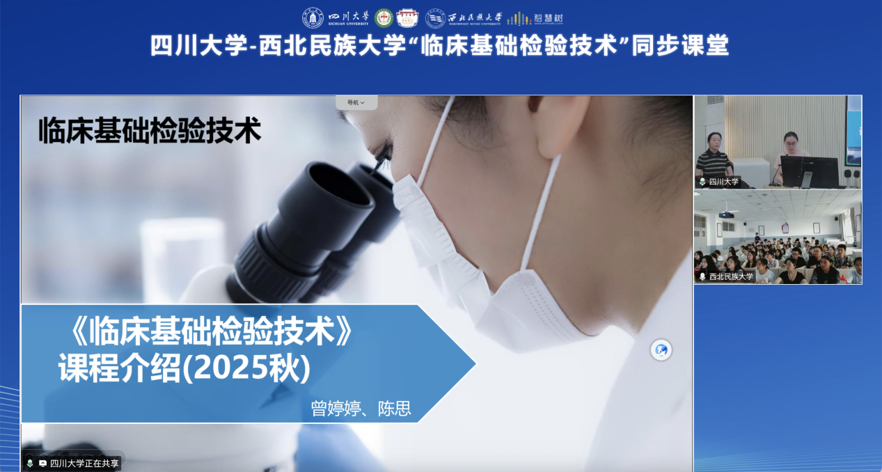 2025年秋季学期,一场跨越千里的“云端课堂”在四川大学与西北民族大学之间精彩上演。由四川大学华西临床医学院医学检验系牵头,联合西北民族大学开展的“临床基础检验技术”同步课堂教学活动顺利举行。两地师生通过AI课程平台“同上一堂课”,共同开启了一场融合智能技术、创新教学与区域协作的教育实践,为推动我国医学教育资源均衡化发展迈出了坚实的一步。