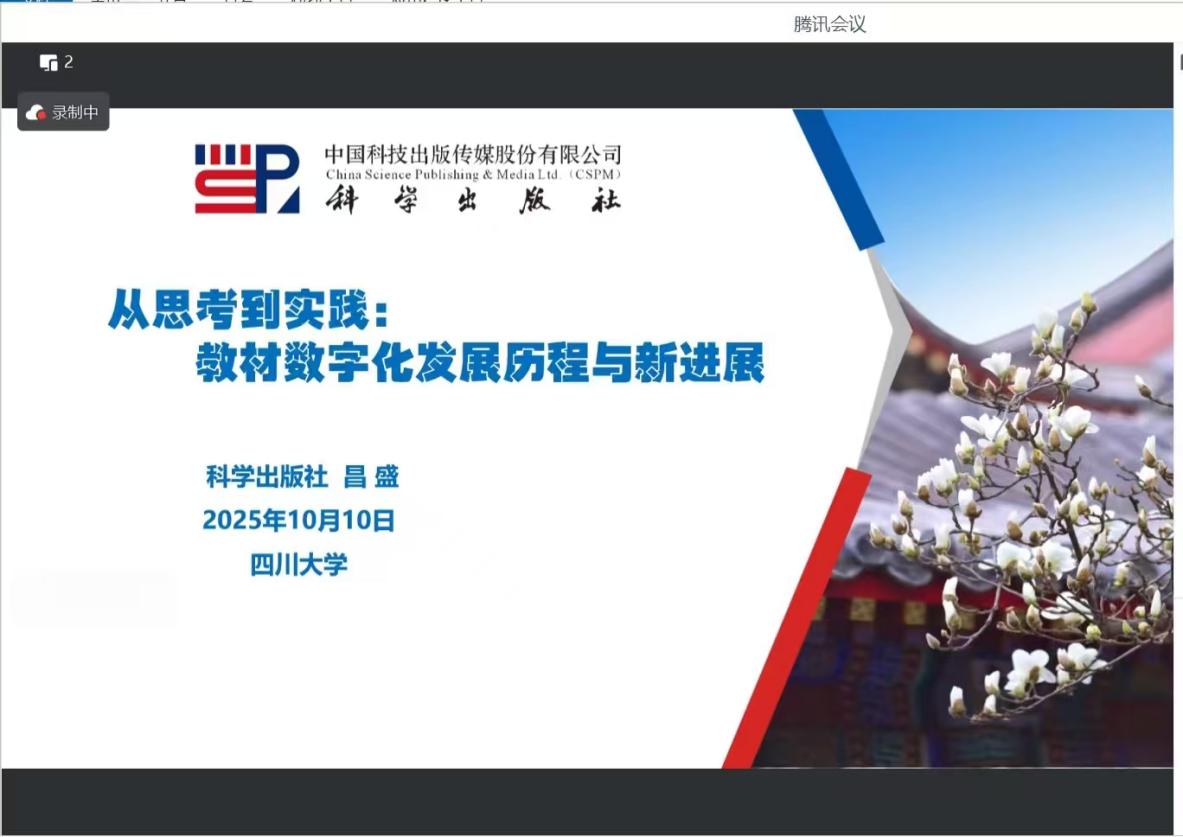 讲座中,昌盛副总编辑以高屋建瓴的视角,结合丰富的行业实践,从三个维度进行了系统深入的阐述。首先,他详细解读了国家层面关于教材建设的方针政策与发展规划,深刻剖析了教材数字化作为国家战略的必然性与紧迫性。之后,他深入分析了教育数字化发展浪潮对教材形态、内容与教学模式带来的革命性影响,强调教材已从传统的知识载体转变为支撑个性化、交互性学习的智慧化平台。最后,他重点分享了科学出版社在教材数字化方面的前沿探索与实践案例,展示了从资源配套、平台构建到全媒体一体化教材开发的全流程解决方案,为在座教师提供了宝贵的实践参考。