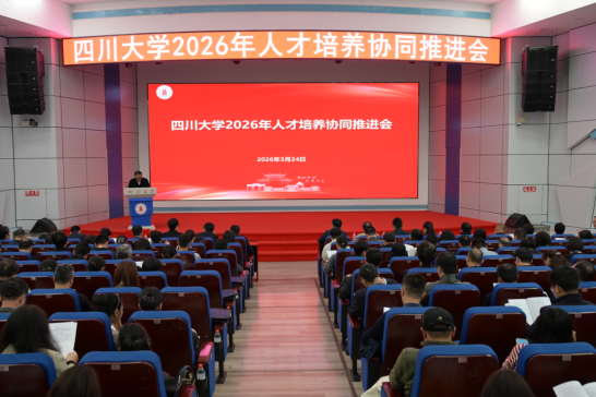 3 月 24 日,学校在望江校区东三教汇文楼演播厅召开2026年人才培养协同推进会,副校长游劲松、校党委副书记刘晓虎、学校相关单位、各学院(系)书记或院长(系主任)及分管本科、研究生培养工作和学生工作的负责人等参加会议。会议由教务处(招生办公室)处长党跃武主持。